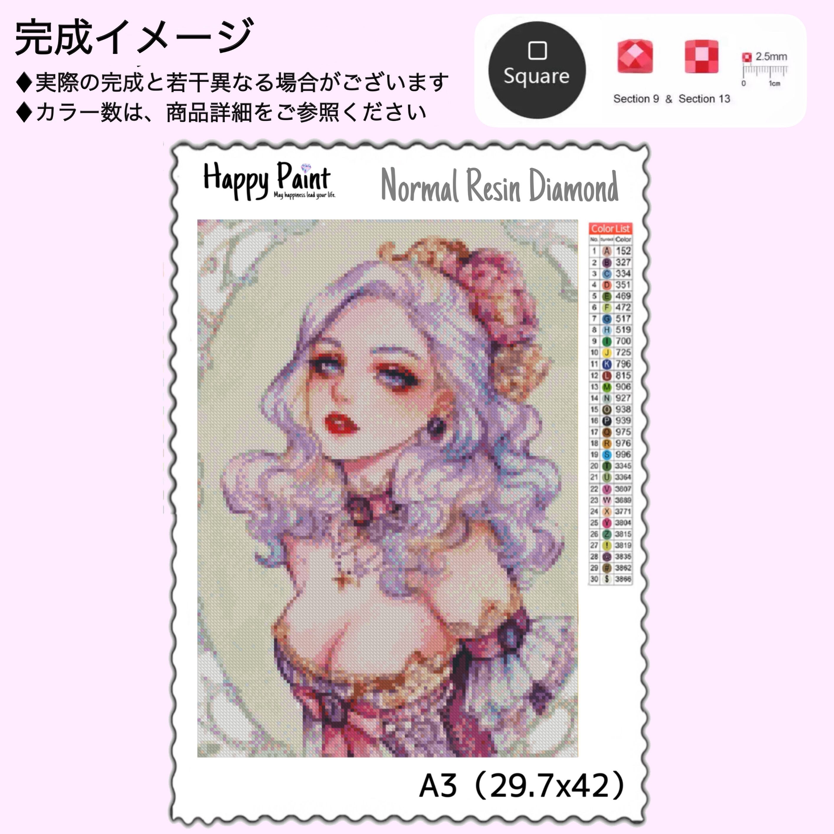 即納☆【ノーマル/特殊ビーズ入り】ダイヤモンドアート A3 姫 お洒落/1648