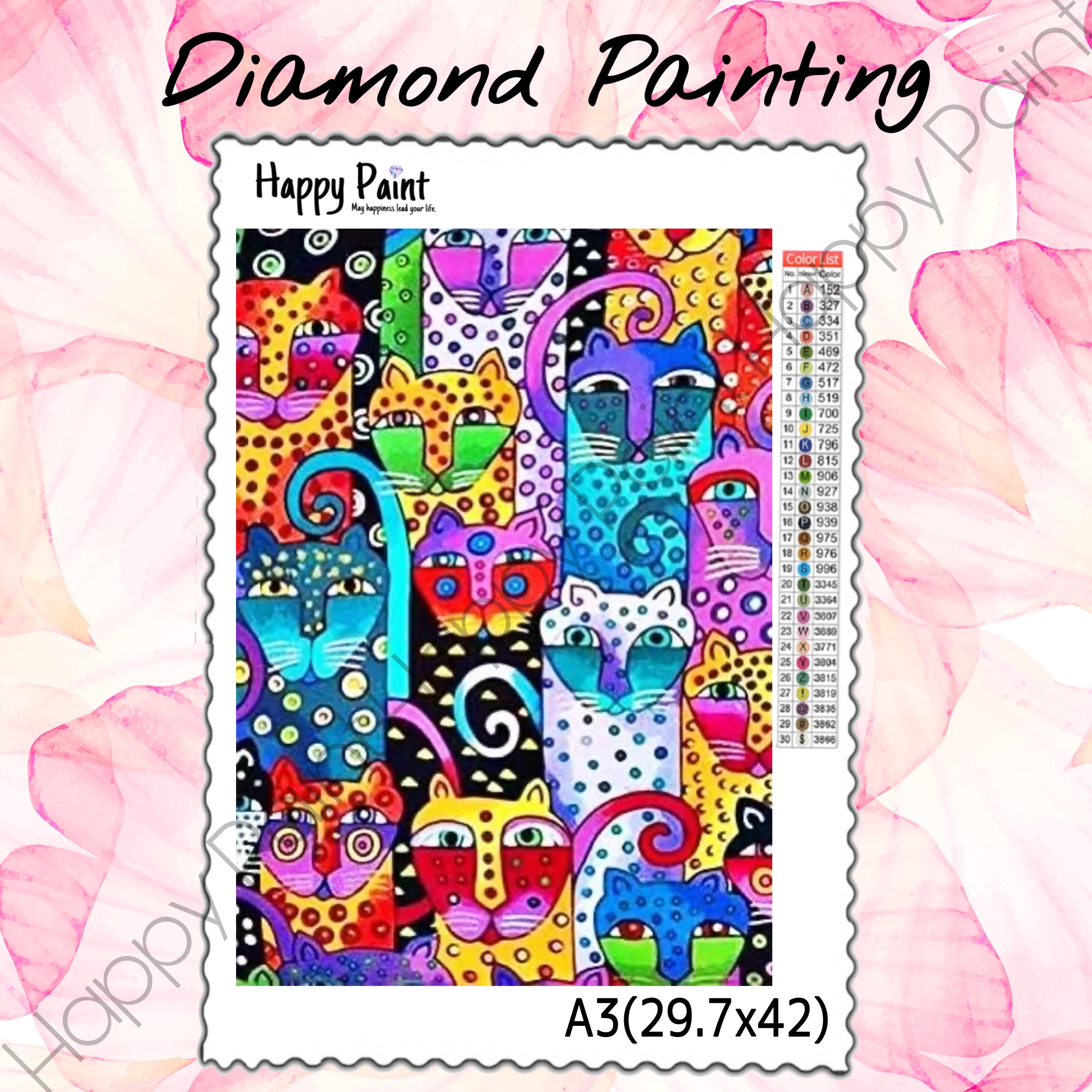 即納☆【ノーマル/特殊ビーズ入り/フルクリスタル/フルフェアリーダスト】ダイヤモンドアート A3 猫 カラフル お洒落/1676