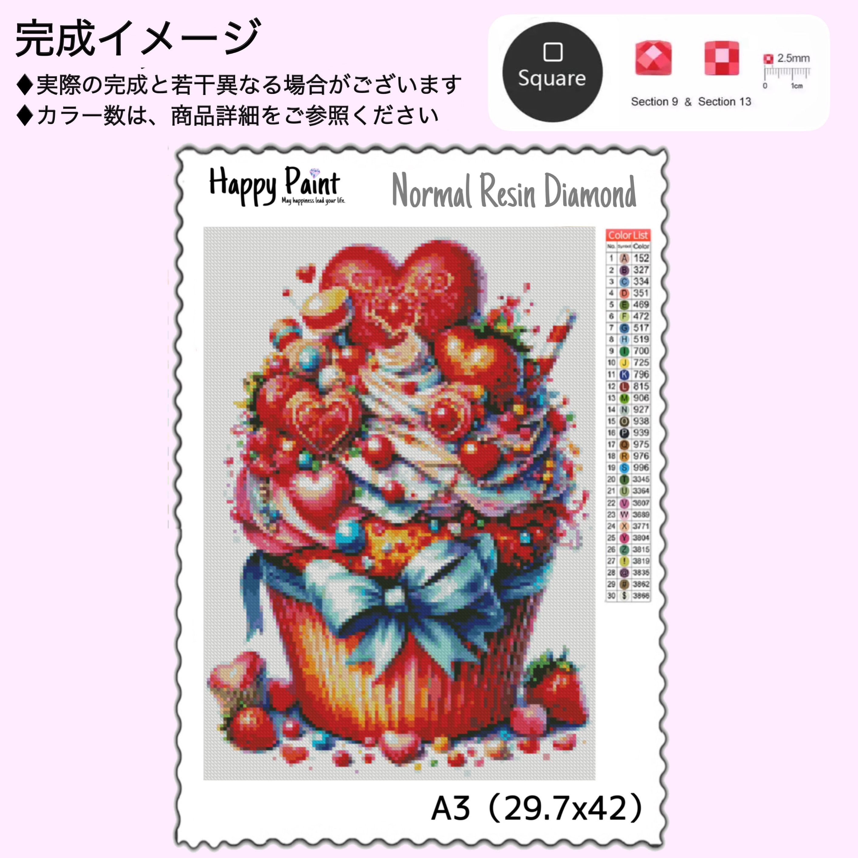 即納☆【ノーマル/特殊ビーズ入り】ダイヤモンドアート A3 ケーキ スイーツ ハート 食べ物 レインボー カラフル お洒落/1861