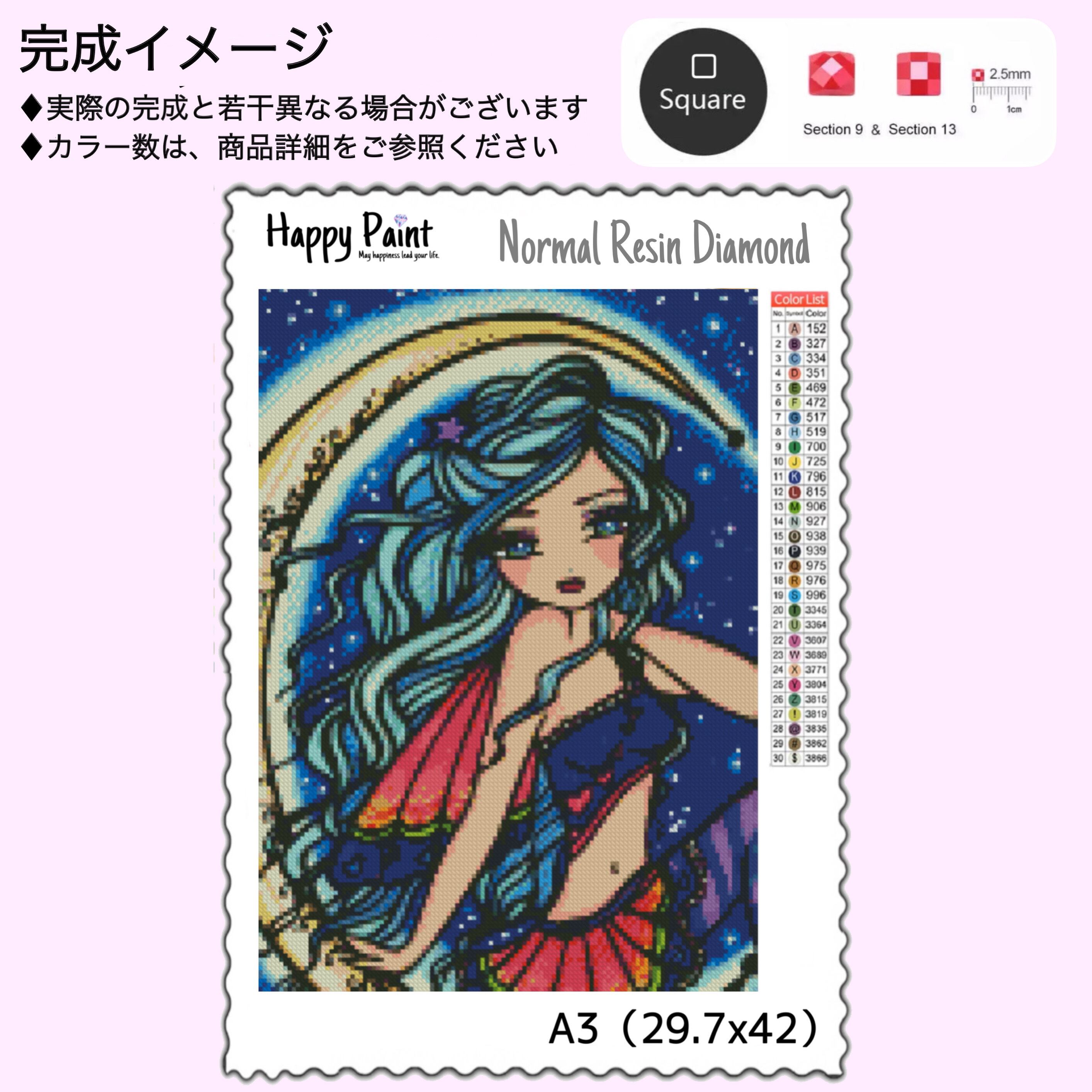 即納☆【ノーマル/特殊ビーズ入り】ダイヤモンドアート A3 カラフル 姫 お洒落 月 樹脂 レジン ハンドメイド DIY ビーズ 手芸/1912