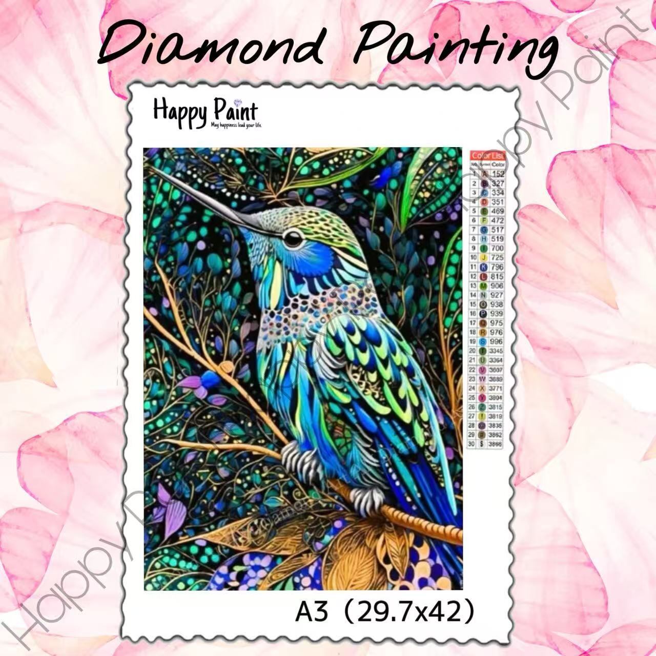 【ノーマル/特殊ビーズ入り/フル樹脂オーロラ/フルクリスタル/フルフェアリー】ダイヤモンドアート A3 鳥 ステンドグラス カラフル お洒落 プレゼント 樹脂 レジン ハンドメイド DIY ビーズ 手芸/2054