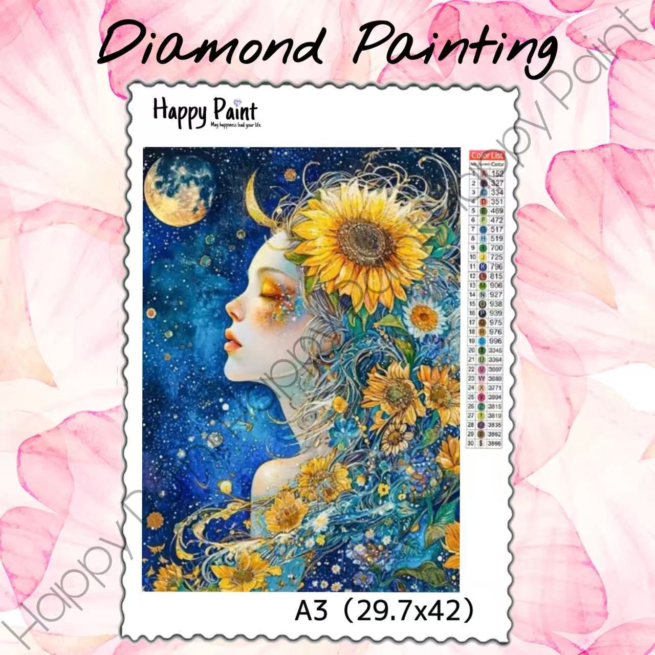 【ノーマル/特殊ビーズ入り/フル樹脂オーロラ/フルクリスタル/フルフェアリー】ダイヤモンドアート A3 女の子 ひまわり 神秘的 お洒落 プレゼント 樹脂 レジン ハンドメイド DIY ビーズ 手芸/2056