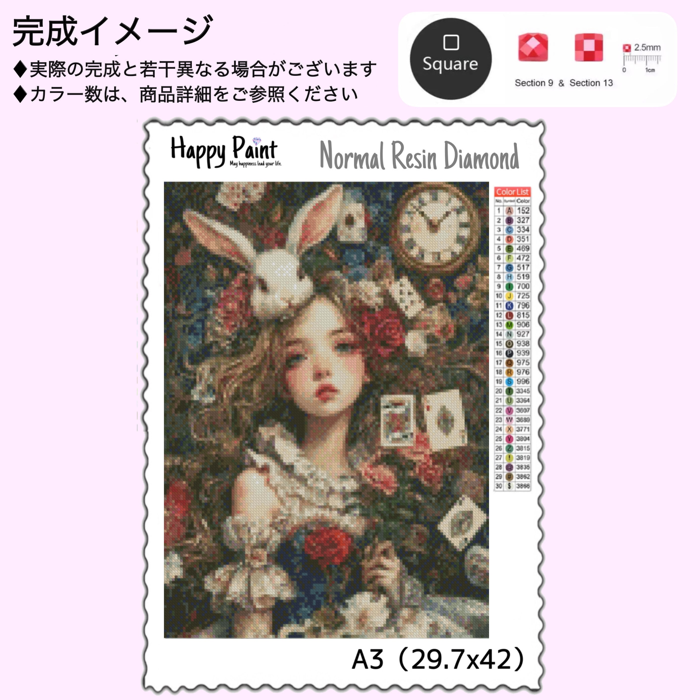 【ノーマル/特殊ビーズ入り/フル樹脂オーロラ/フルクリスタル/フルフェアリー】ダイヤモンドアート A3 不思議の国 うさぎ 時計 お洒落 プレゼント 樹脂 レジン ハンドメイド DIY ビーズ 手芸/2074