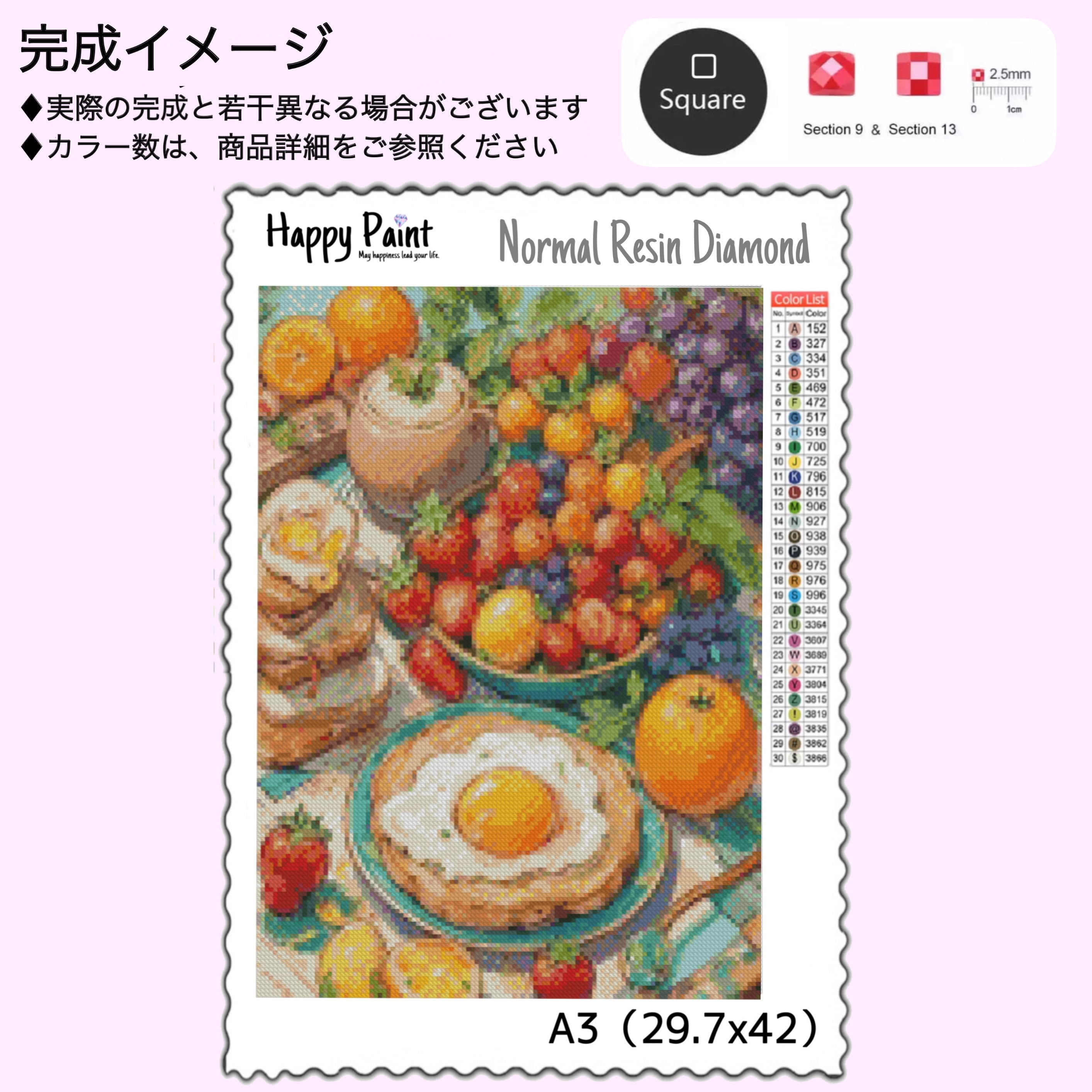 【ノーマル/特殊ビーズ入り/フル樹脂オーロラ/フルクリスタル/フルフェアリー】ダイヤモンドアート A3 朝食 フルーツ 目玉焼き お洒落 プレゼント 樹脂 レジン ハンドメイド DIY ビーズ 手芸/2084