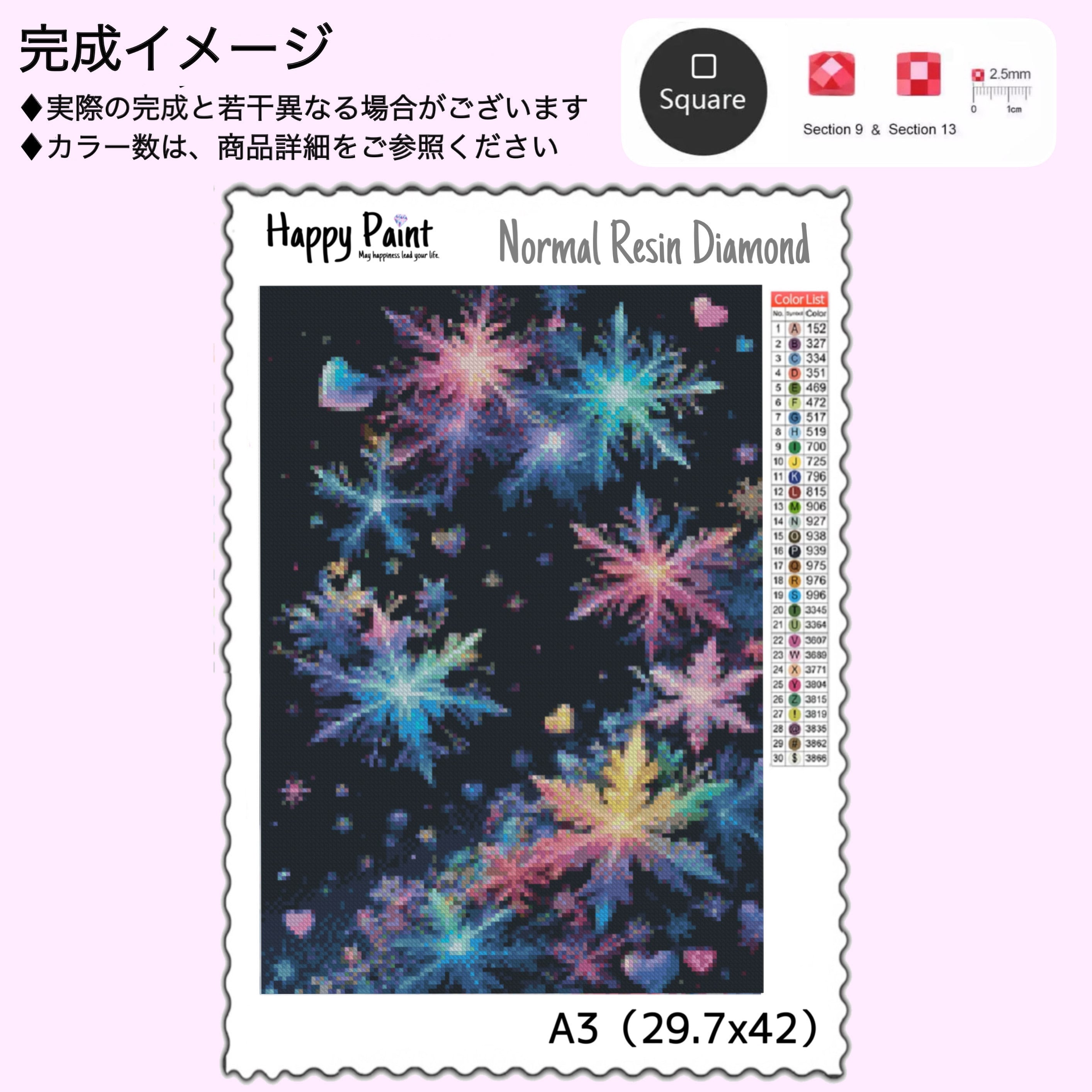 【ノーマル/特殊ビーズ入り/フル樹脂オーロラ/フルクリスタル/フルフェアリー】ダイヤモンドアート A3 雪 結晶 神秘的 カラフル お洒落 プレゼント 樹脂 レジン ハンドメイド DIY ビーズ 手芸/2105