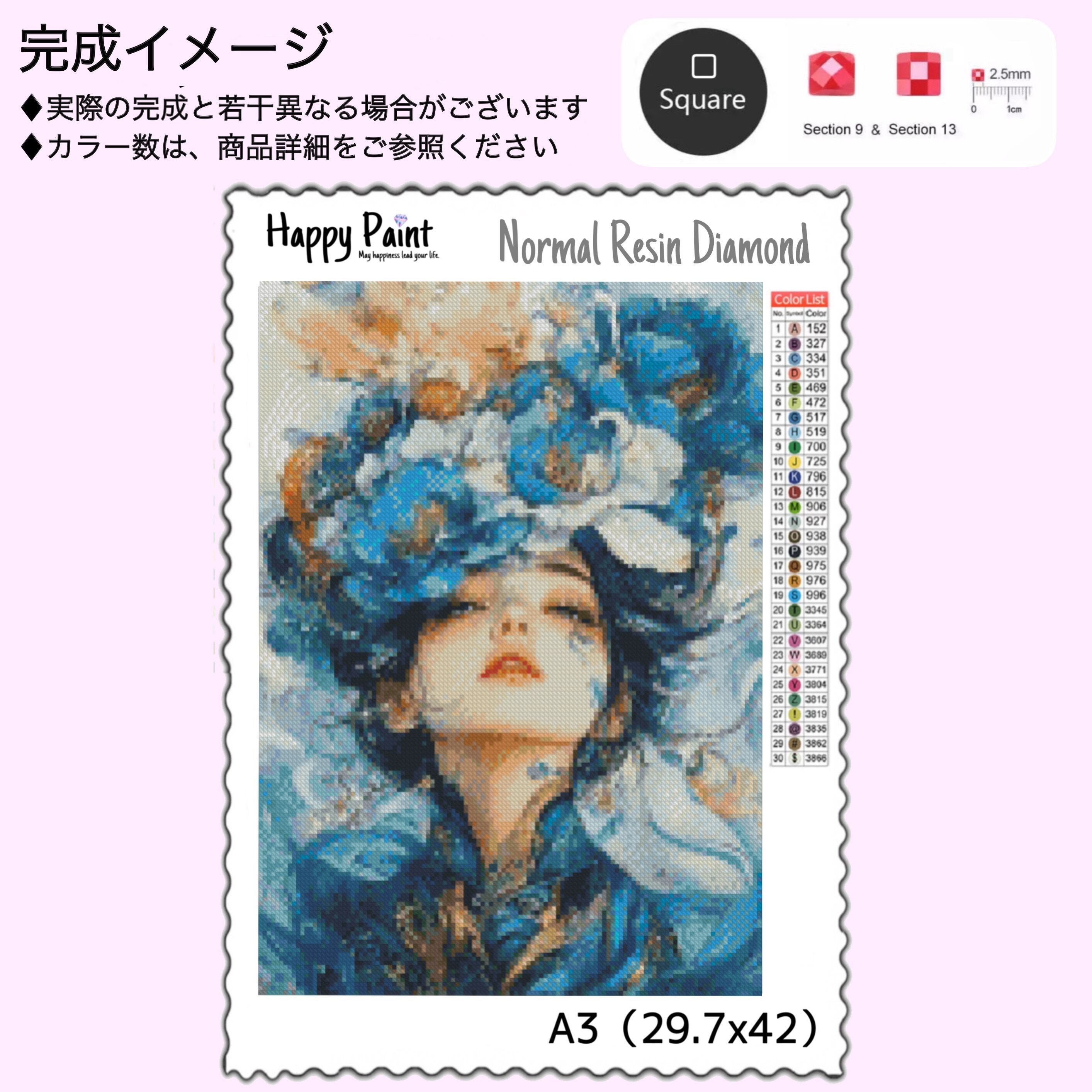 即納☆【ノーマル/特殊ビーズ入り】ダイヤモンドアート A3 お花 美女 ブルー お洒落 プレゼント 樹脂 レジン ハンドメイド DIY ビーズ 手芸/2065