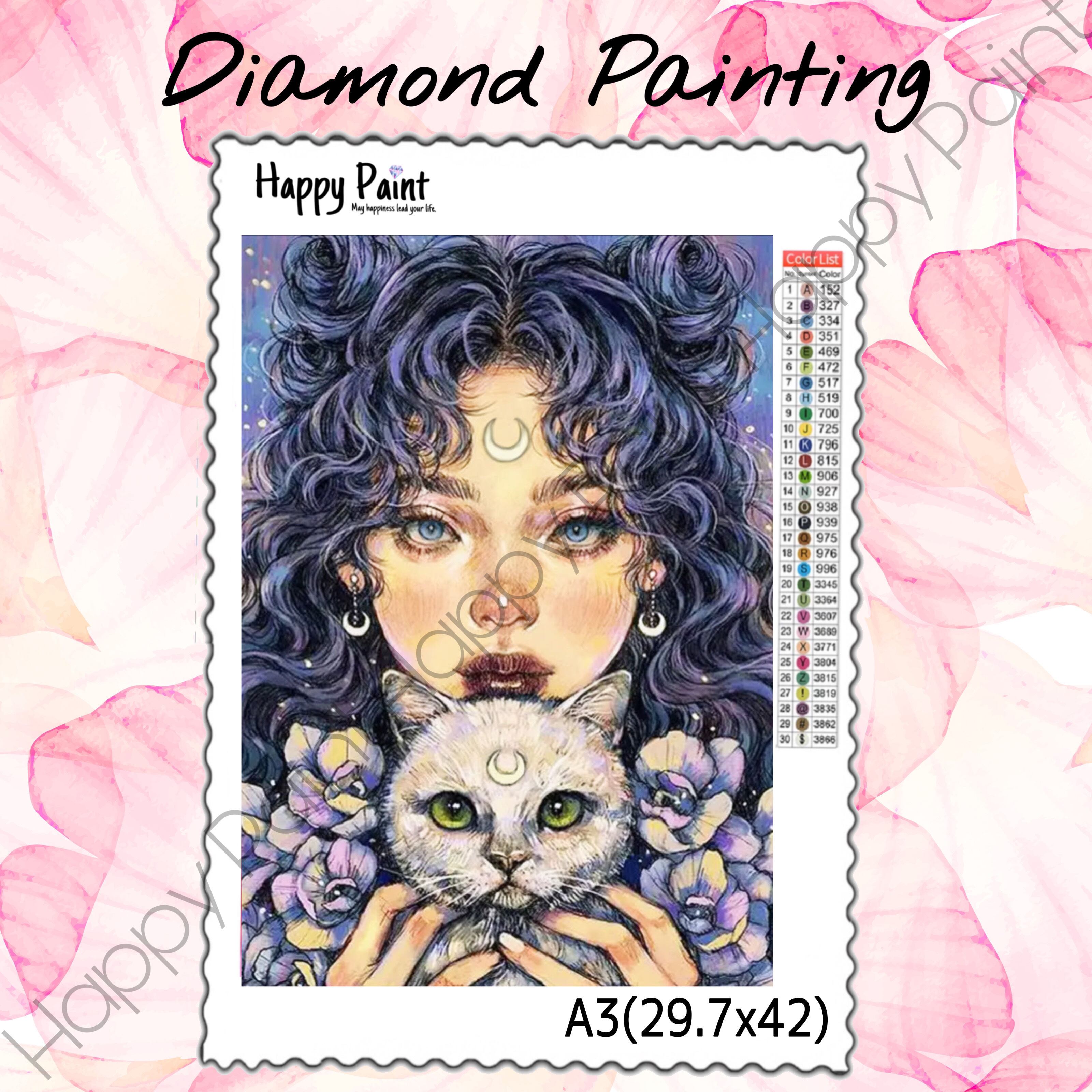 【ノーマル/特殊ビーズ入り/フルクリスタル/フルフェアリーダスト】ダイヤモンドアート A3 猫 美少女 お洒落/646