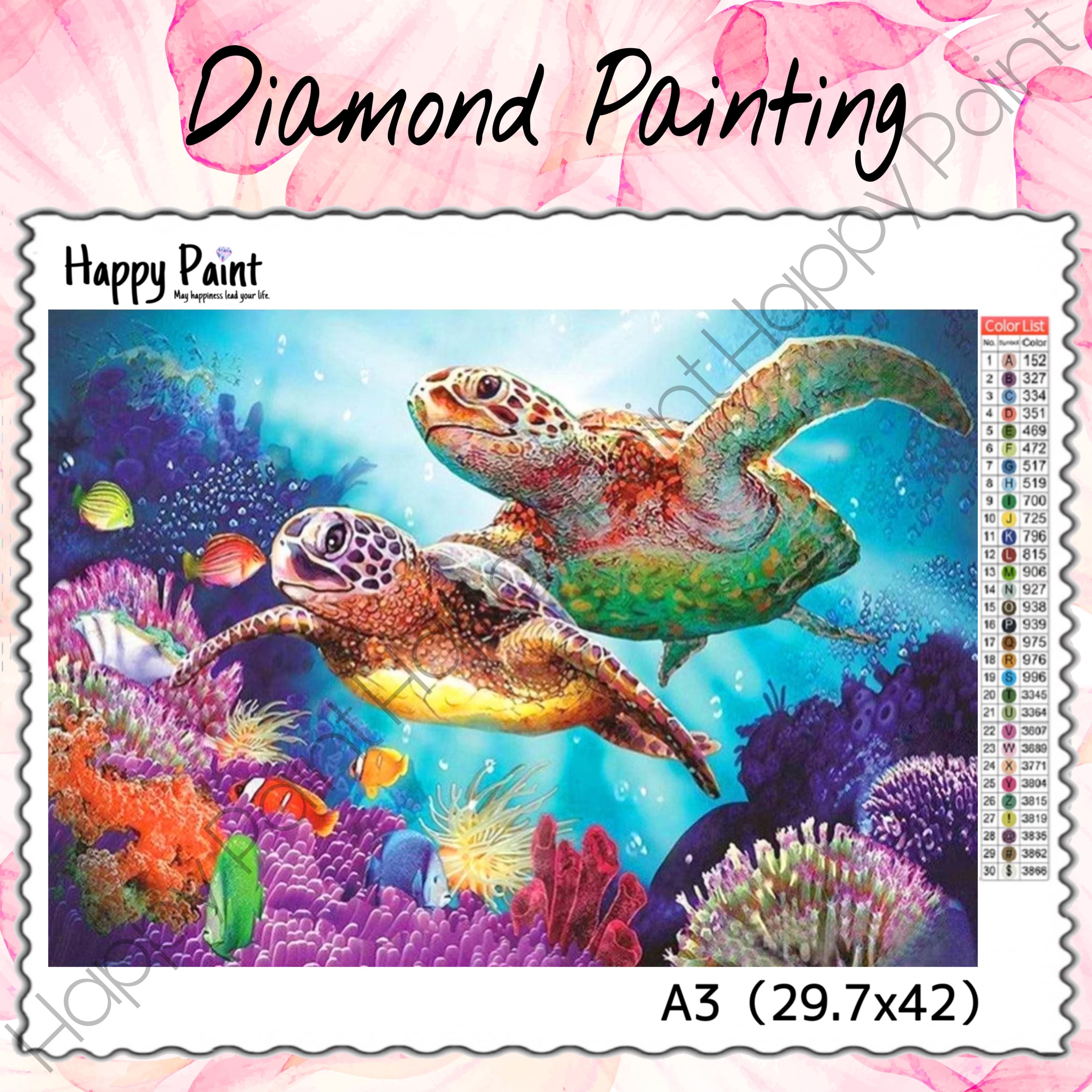 【ノーマル/特殊ビーズ入り/フルクリスタル/フルフェアリーダスト】ダイヤモンドアート A3 海 カメ 亀 お洒落/1690